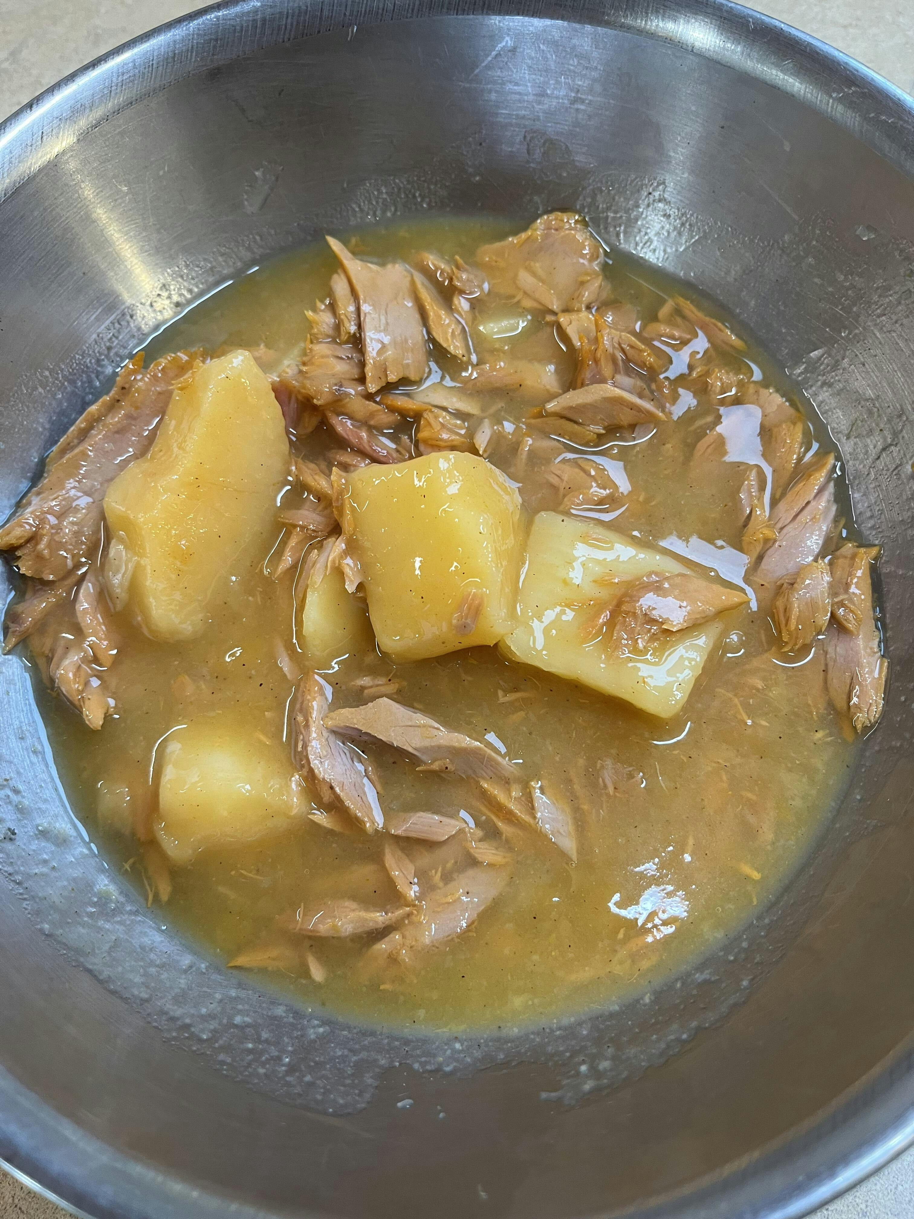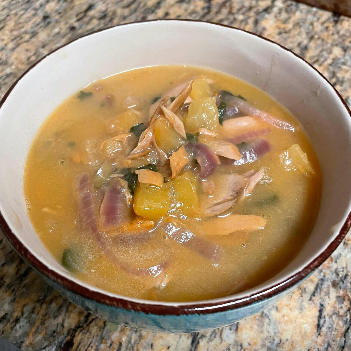 - Traditional Ecuadorian tuna soup with yuca, onions, and spices